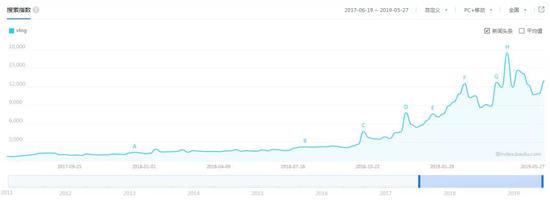 从上图中我们可以看出Vlog一词在2018年末到2019年初这段时间热度呈现指数型增长。